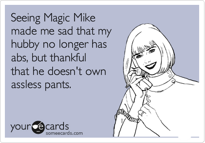Well, since we established in yesterday’s Magic Mike post, that I’m possibly addicted to “Mommy Porn” and Channing Tatum’s abs, I thought I’d write some ecards to commemorate the occasion.